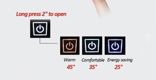 7. Handmatige aanpassing heeft drie niveau, rood licht betekent hign-temperatuur verwarming continu. Wit licht betekent continu middelmatig verwarmen, blauw licht betekent continu weinig verwarming