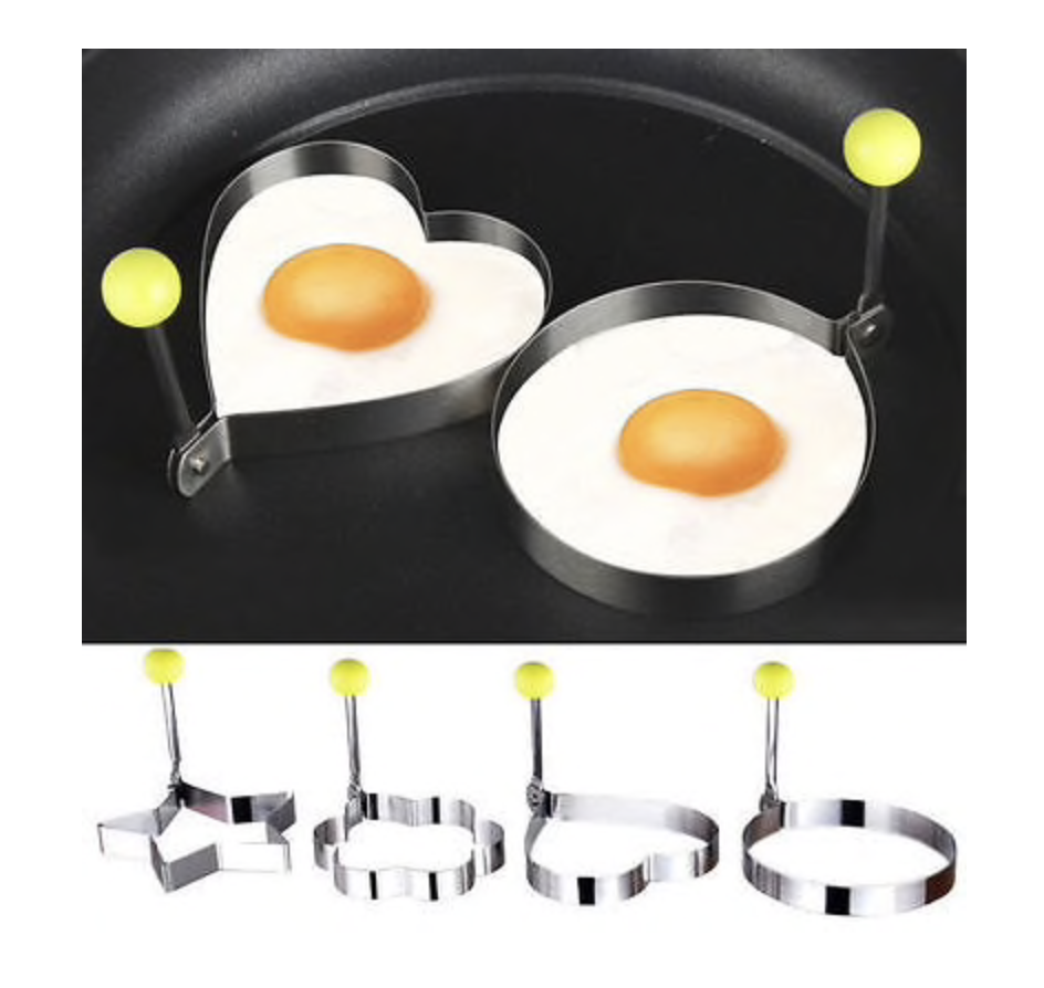 Maak een feest bij het bakken van je eitje, omelet, koekjes of pannenkoek. Met deze RVS vormen bak je eenvoudig eitjes, omeletten, koekjes of pannenkoeken in een perfecte vorm! Het werkt eenvoudig, zet je pan op het vuur en smeer deze in met boter of gebruik olijfolie. Leg de vorm in de pan en breek je ei boven de vorm of giet het pannenkoekenbeslag in het mengsel. Bakken maar! Eenmaal klaar haal je eerst de vorm uit de pan, hierna schep je jouw perfect ei, omelet, baksel of pannenkoek uit de pan: en genieten maar van jouw feestelijke gerecht!