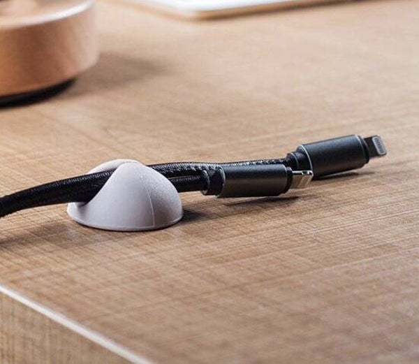 Deze flexibele kabelgeleider maakt kabels in het bereik van de handgreep los en voorkomt dat er kabels achter en onder het bureau schuiven,