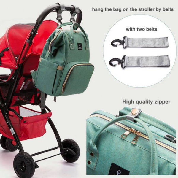 Bij het bestellen van deze luiertas krijgt u nu ook gratis kinderwagen clips + een extra flessenwarmhouder geleverd.