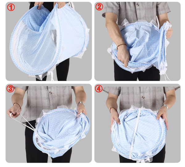 Opvouwbaar popup wiegje tent met ingebouwde klamboe is overal gemakklijk mee te nemen.