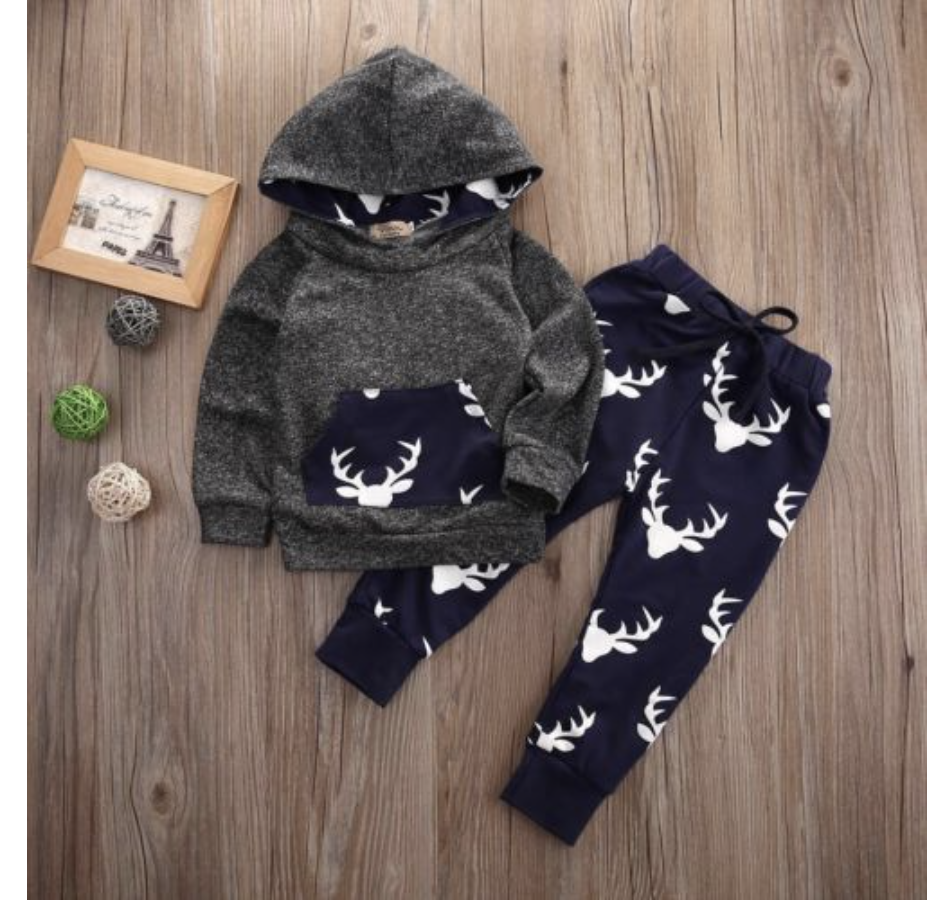 Kledingset Hert Grijs Blauw | Huispakje Boxpakje Herfst Winter | Baby Peuter