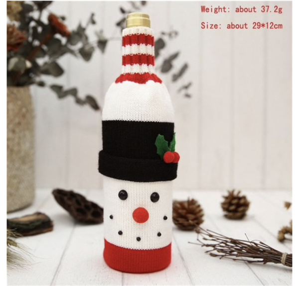 Wijnfles Cover Kerst Kerstman Sneeuwman